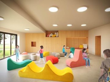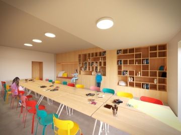 Interiér jsme navrhli tak, aby byl účelový, ale zároveň v dětech vzbudil kreativitu