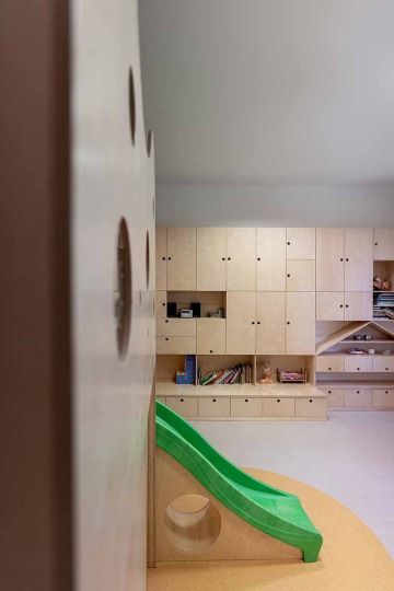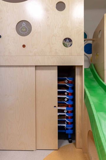V rámci další etapy jsme měli možnost zasáhnout do samotného fungování školky a v jedné ze dvou tříd navrhnout kompletní nábytek, který bude odpovídat provozu samotné třídy.