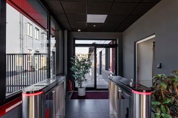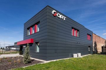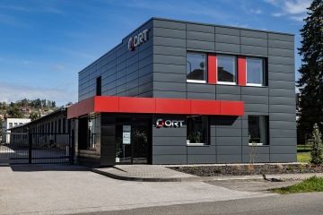 Jedním z průmyslových objektů, které jsme řešili, je vrátnice firmy ORT, která slouží jako přístupový bod do celého areálu. Stavba vrátnice sahá do dob založení areálu na přelomu 19. a 20. století. V průběhu času však došlo k tak zásadním stavebním úpravám, že jsme se nakonec oprostili od minulosti a vytvořili jsme prostory reflektující modernistický přístup klienta.