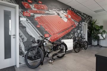 Na návrhu jsme spolupracovali s Ing. Arch. Lukášem Skládalem. Součástí zadání bylo, abychom vycházeli z již realizované úpravy jiného objektu, který jsme navrhovali. Zároveň jsme měli vytvořit prostory pro klienta samotného. Ten většinu prostor pronajímá, tuto část ale užívá. Proto jsme se v interiéru snažili otisknout klientovu DNA strojírenské výroby, zároveň jeho zálibu v motorkách a historii. Nedílnou součástí zadání samozřejmě bylo provést úpravu tak, aby byla budova energeticky nenáročná.